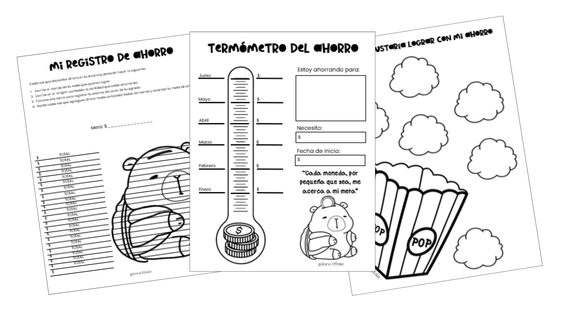 Actividades listas para imprimir para trabajar el ahorro, las metas y el seguimiento del proceso.